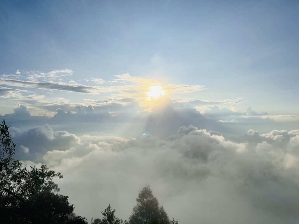This is a famous sunrise point on a volcano called Mt. Batur.